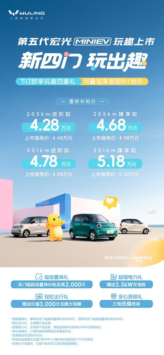 6、第五代五菱宏光 MINIEV 上市,4.48 万-5.48 万元